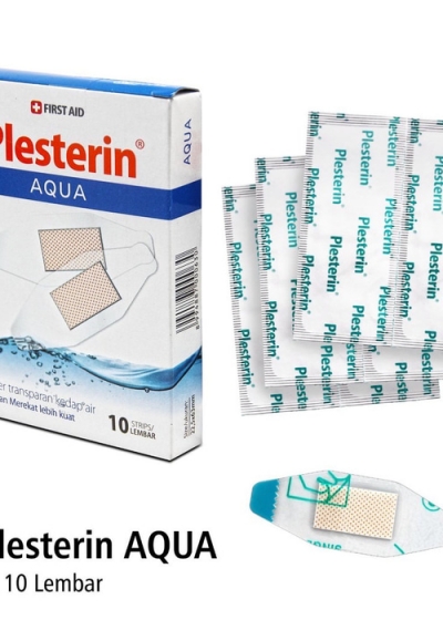 Plester transparan Tahan Air Ukuran: 19mm x 72mm 1box isi 10 lembar Plester transparan yang tahan terhadap kondisi basah (waterproof) dan bakteri berbahan PU (polyurethane), kulit lebih bebas bernapas, lebih nyaman, soft dan lentur. Memberikan perlindungan total terhadap kuman, air, dan kotoran. Lapisan film yang tipis dan fleksibel tetap melekat biarpun dalam keadaan basah seperti saat berendam / mandi dan berenang. Cara pemakaian: -Bersihkan dan keringkan kulit di sekitar luka -Buka kemasan, lalu tarik kertas pelindung Plesterin Aqua -Tutup luka dengan Plesterin Aqua, setelah tertutup sempurna, tarik plastik pelindung sisi atas plesterin Aqua -Periksa luka setiap hari, ganti Plesterin sesuai kebutuhan